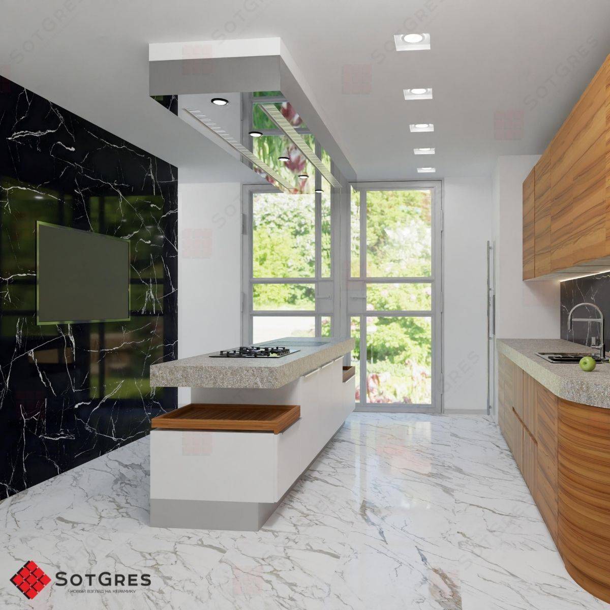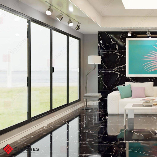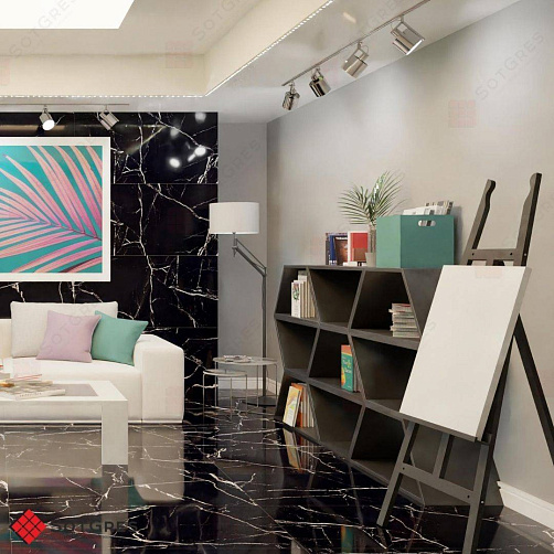 Купить керамогранит черный под мрамор 60x120, толщина 9 мм, 1,44м2. CALACATA BLACK глянцевый керамогранит с двойной полировкой в Краснодаре