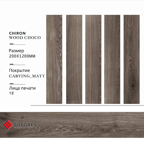 CHIRON WOOD CHOCO carving/20х120/матовый керамический гранит