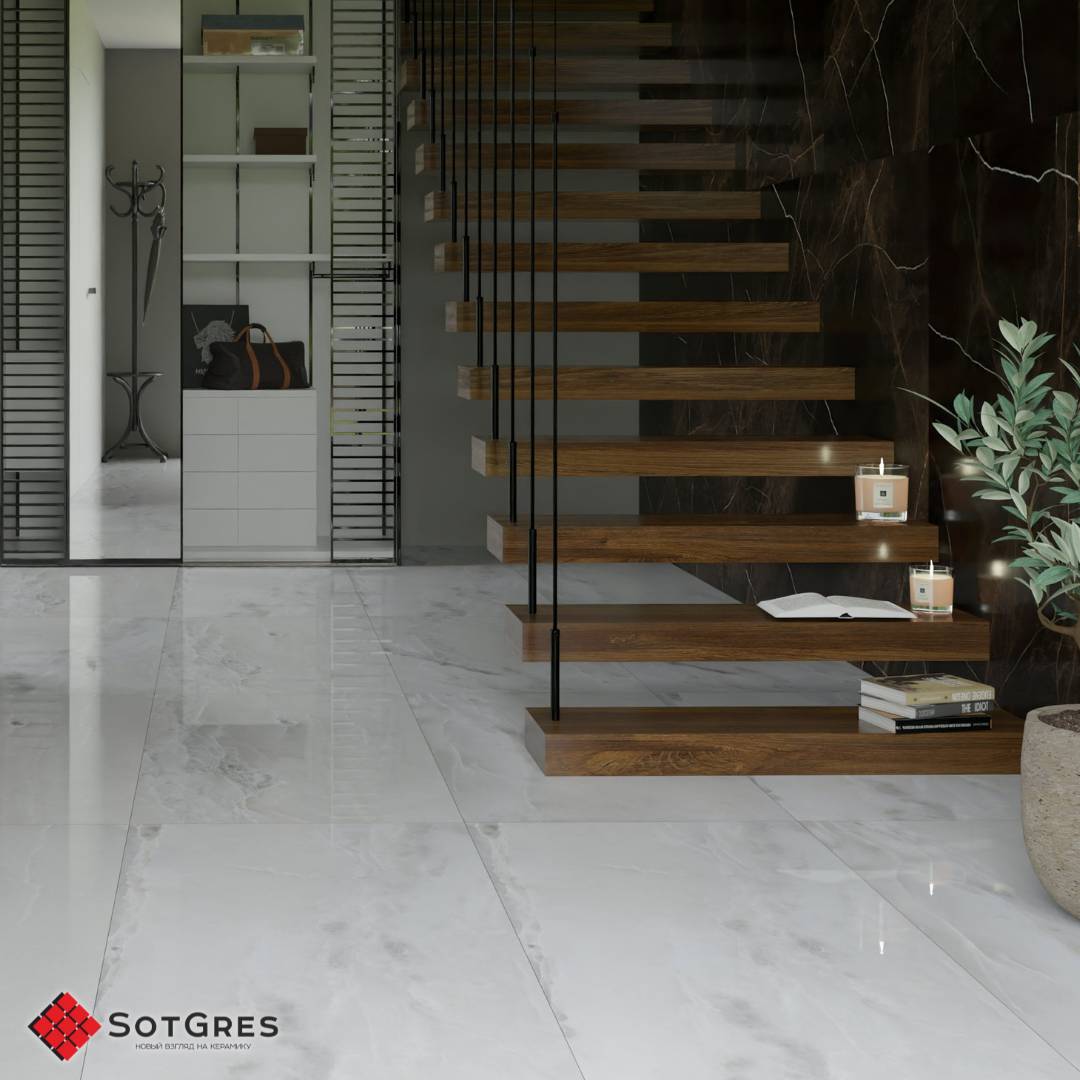Используем специализированный клей для керамогранита, разводим его согласно инструкции