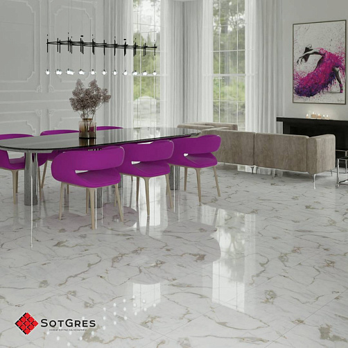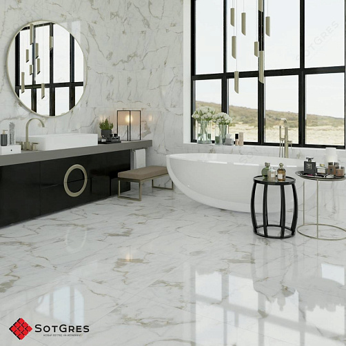 Купить керамогранит белый под мрамор 60x120, толщина 9 мм, 1,44м2. MODERN STATUARIO глянцевый керамогранит в Краснодаре