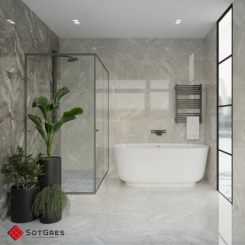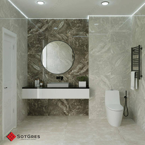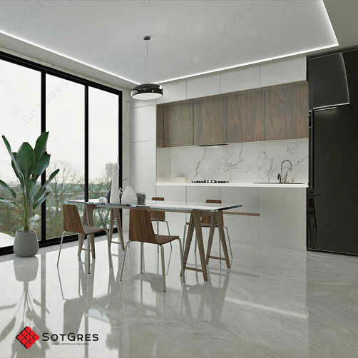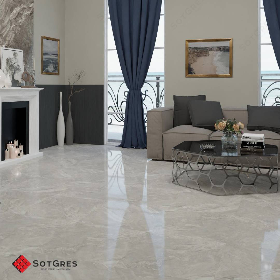 Купить керамогранит серый под оникс 60x60, толщина 9 мм, 1,44м2. ALASKA BIANCO глянцевый керамогранит в Краснодаре