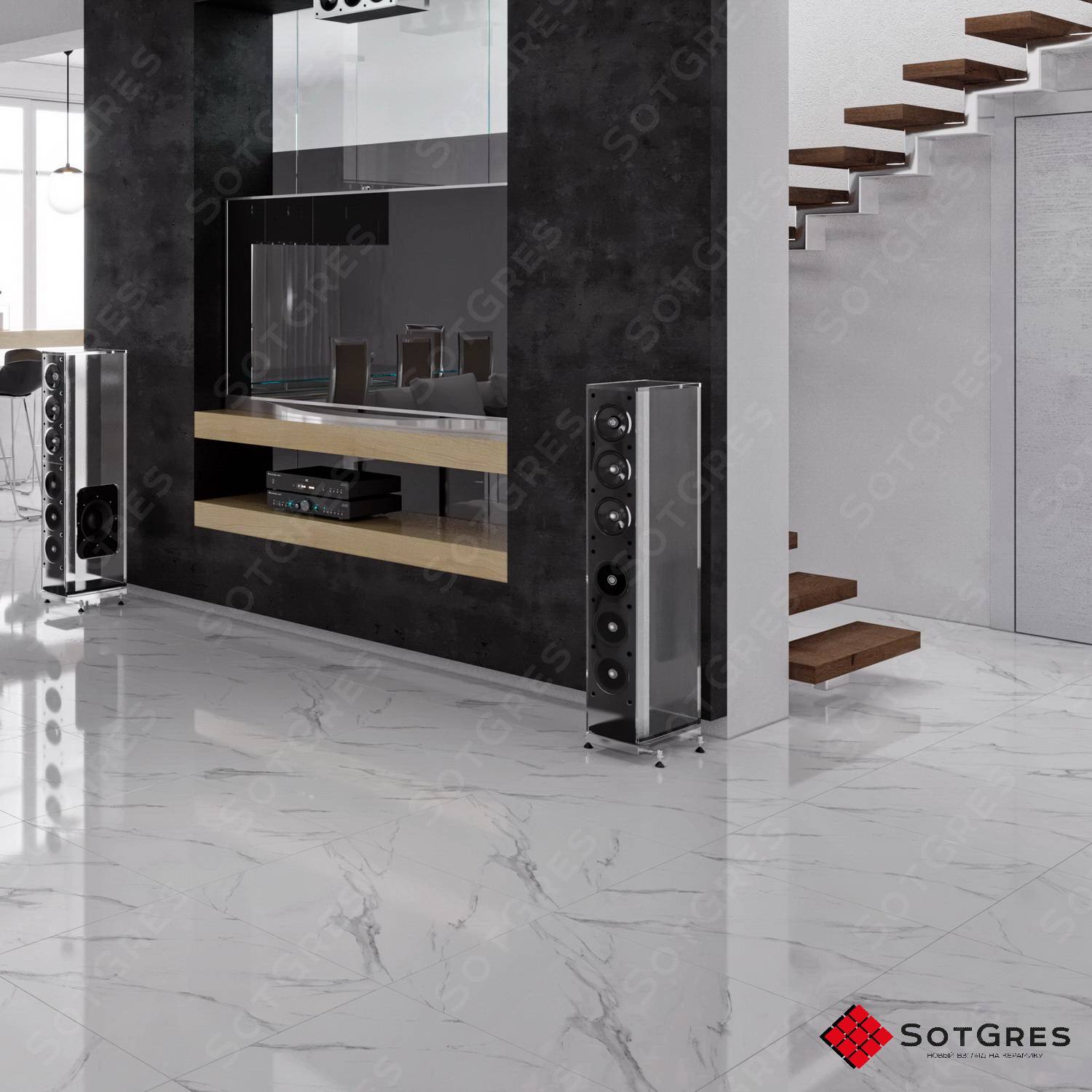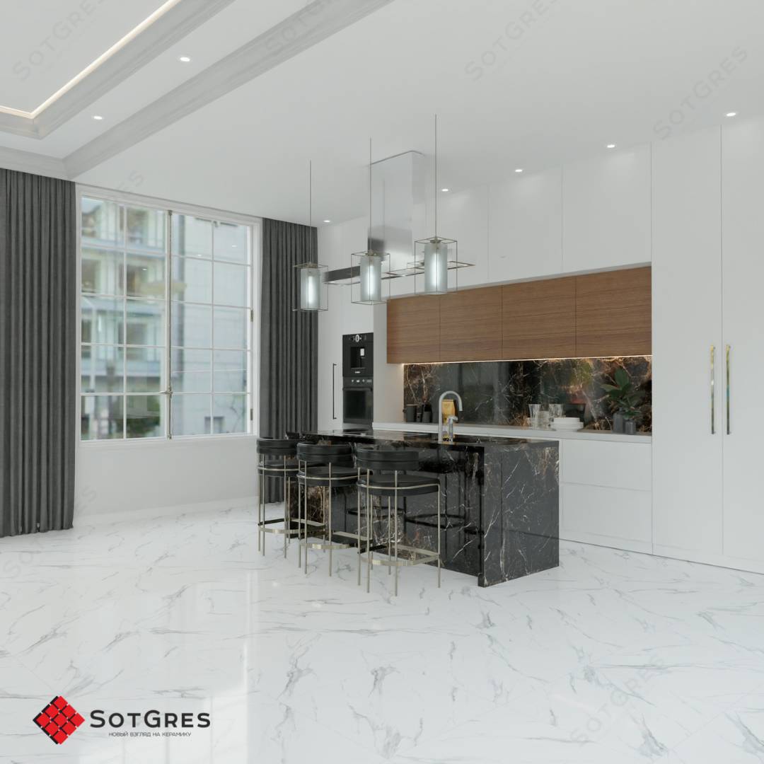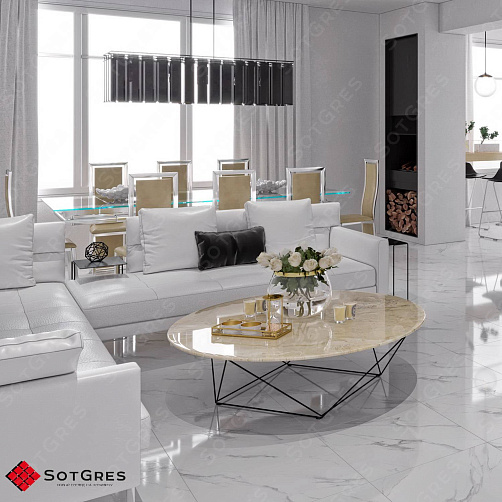 Купить керамогранит белый под мрамор 60x60, толщина 9 мм, 1,44м2. CLASSIC STATURIO глянцевый керамогранит в Краснодаре