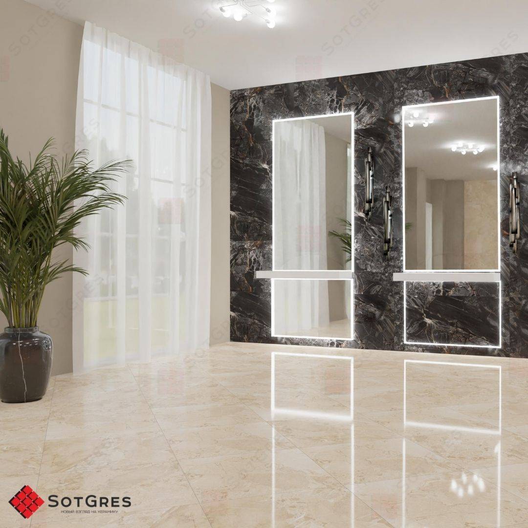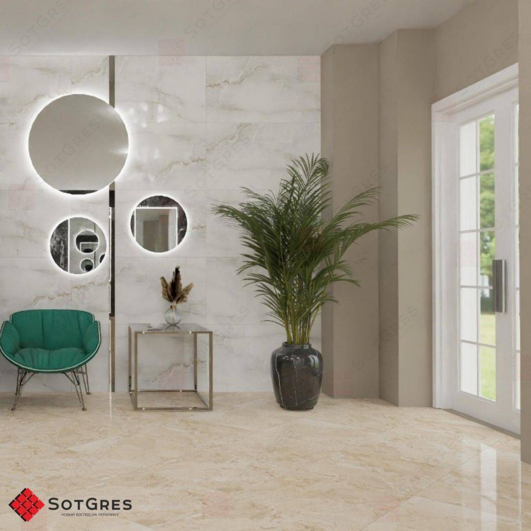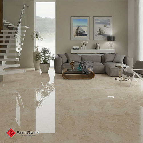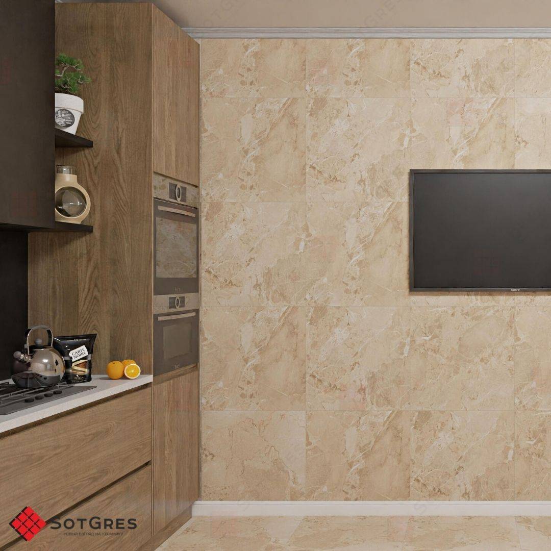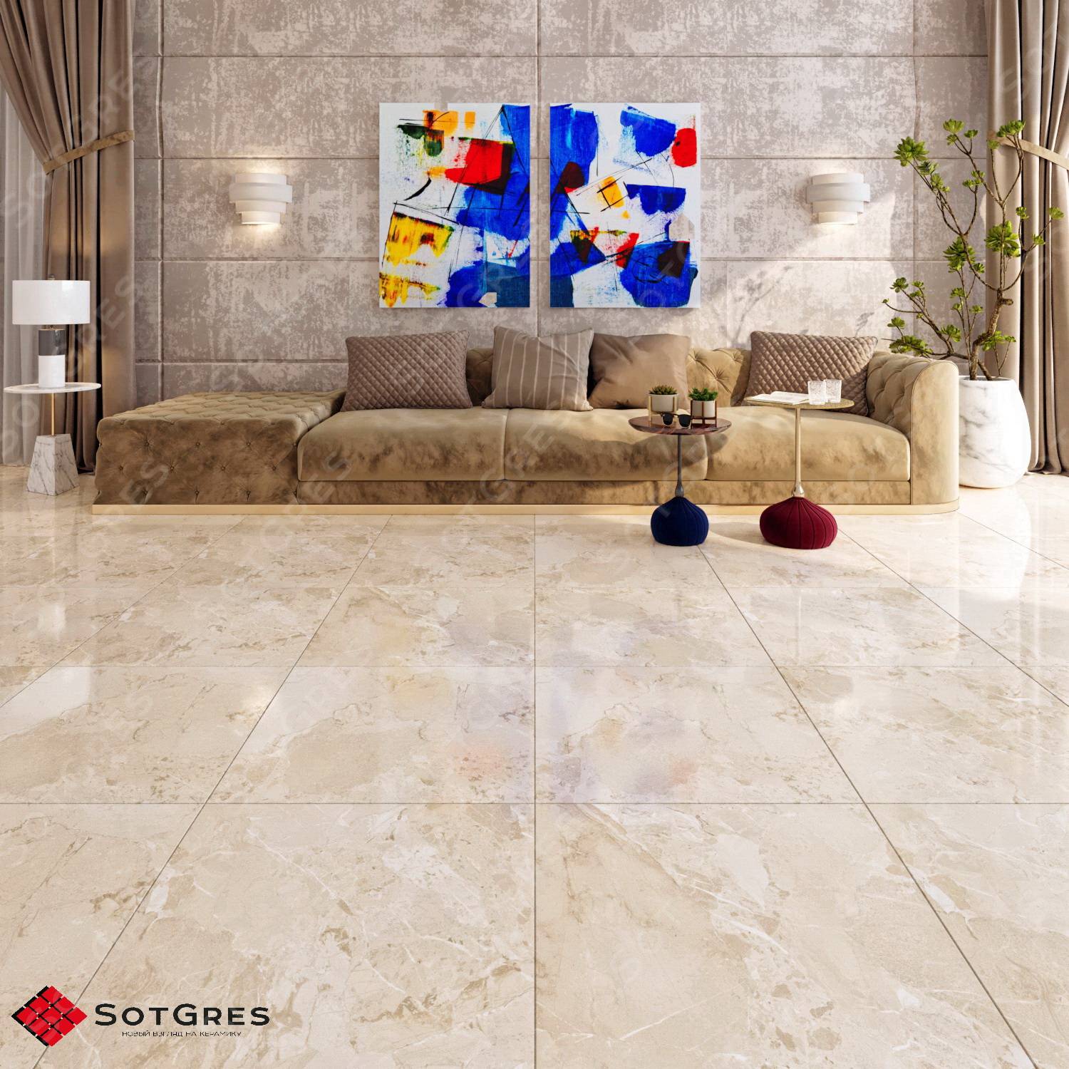 Купить керамогранит идеальный бежевый камень оникс 60x60, толщина 9 мм, 1,44м2. DOVE CREMA глянцевый керамогранит в Краснодаре