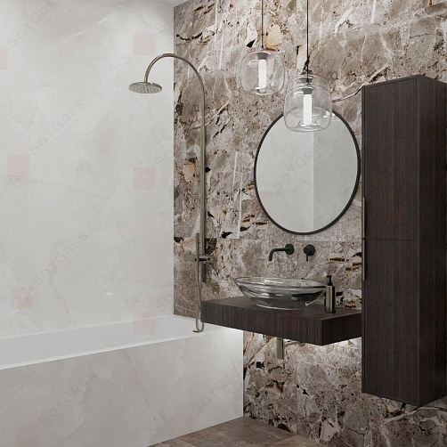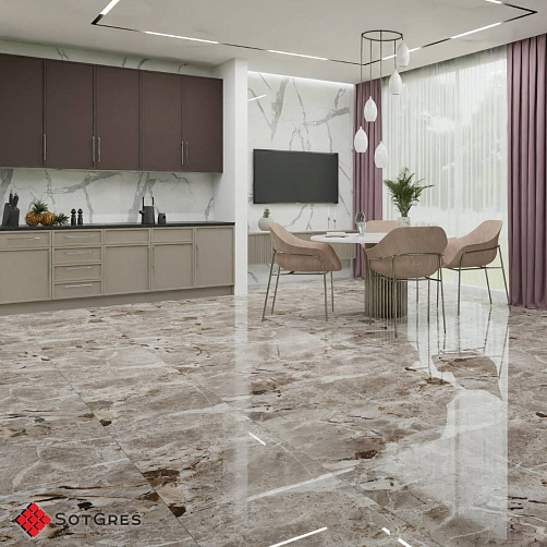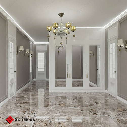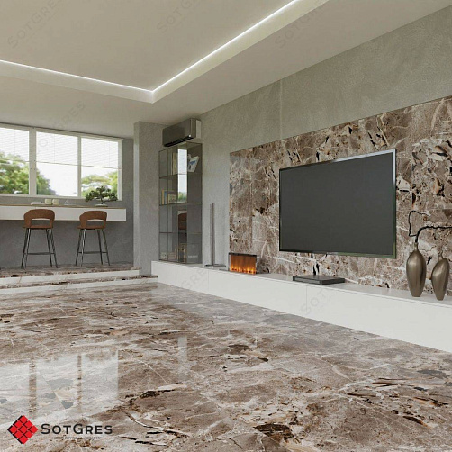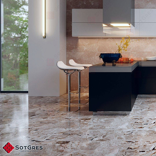 Купить керамогранит серый с коричневым рисунком 120x60, толщина 9 мм, 1,44м2. GRISS SMOKY глянцевый керамогранит в Краснодаре