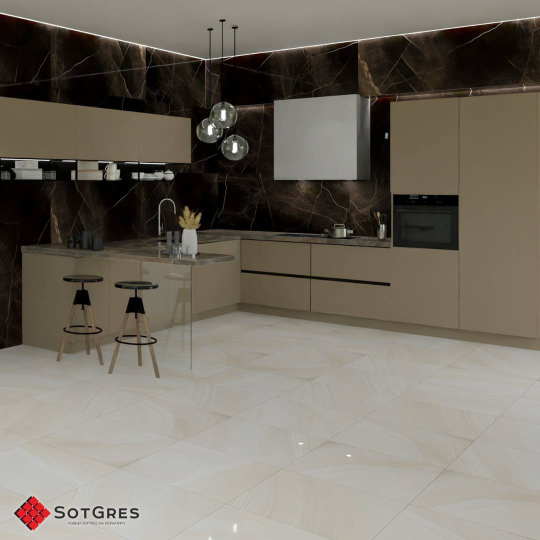 Купить керамогранит светлый бежевый под оникс 60x60, толщина 9 мм, 1,44м2. ONICE CREMA глянцевый керамогранит в Краснодаре