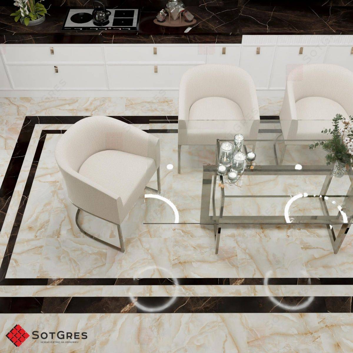 Купить керамогранит бежевый под оникс 60x60, толщина 9 мм, 1,44м2. ONYX TROPICAL глянцевый керамогранит в Краснодаре