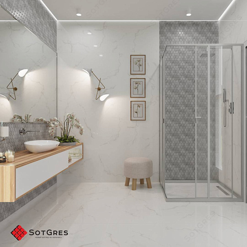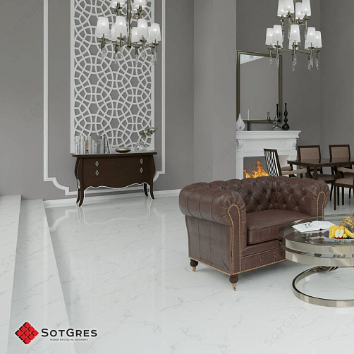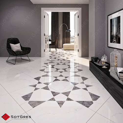 Купить керамогранит белый под мрамор 60x60, толщина 9 мм, 1,44м2. STATURIO глянцевый керамогранит в Краснодаре