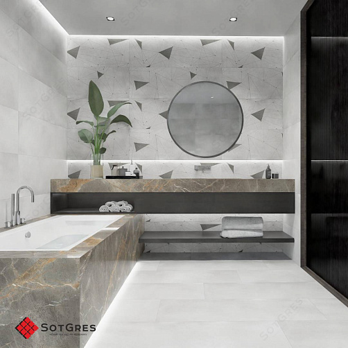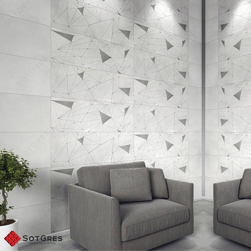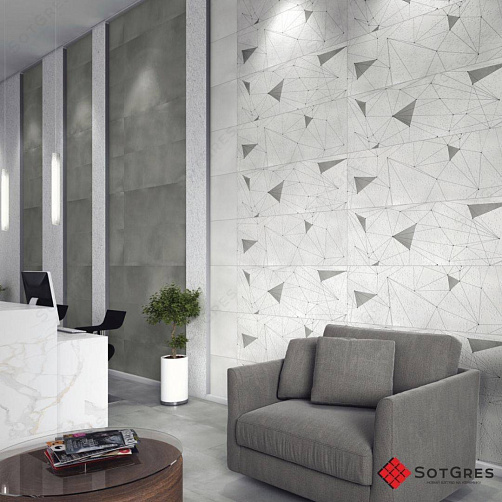 Купить керамогранит лофт серый бетон с геометрическим рисунком 120x40, толщина слим 6 мм ESPANA CEMENTO DECORE матовый в Краснодаре