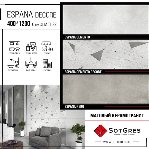 ESPANA CEMENTO DECORE R2/40х120/матовый керамический гранит carving