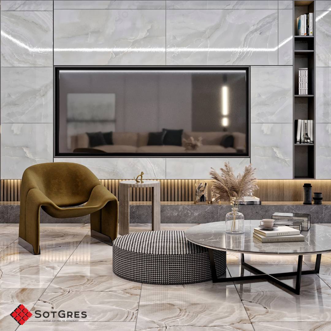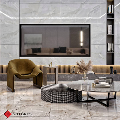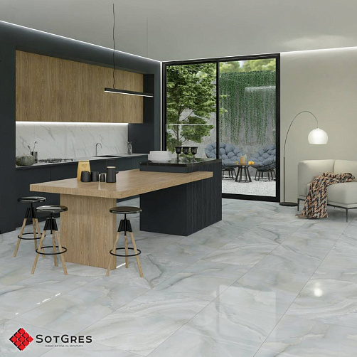 Купить керамогранит серо-голубой под оникс 60x120, толщина 9 мм, 1,44м2. BLUE ONYX глянцевый керамогранит в Краснодаре