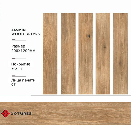 JASMIN WOOD BROWN/20х120/матовый керамический гранит