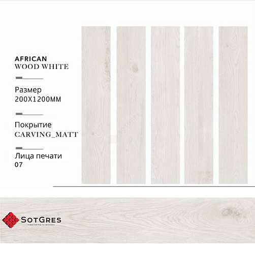 AFRICAN WOOD WHITE carving/20х120/матовый керамический гранит