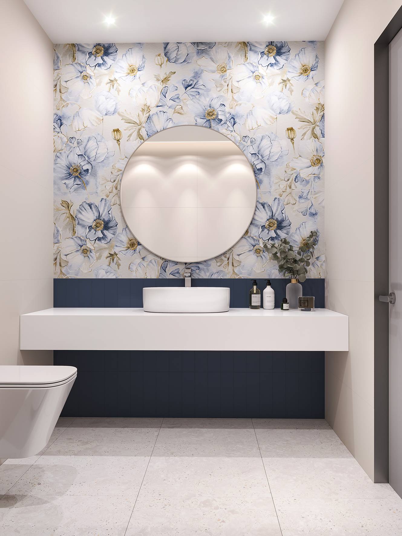 Если необходимо приклеить к стенам цокольную плитку, расстояние до напольной плитки не должно быть меньше одного межплиточного шва
