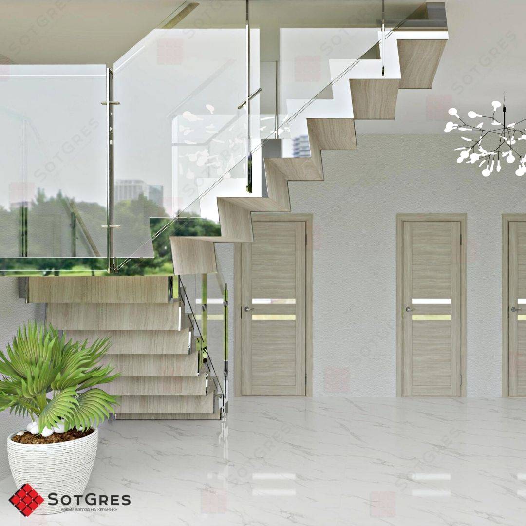 Купить керамогранит белый под мрамор 60x120, толщина 9 мм, 1,44м2. CLASSIC CORAL глянцевый керамогранит в Краснодаре