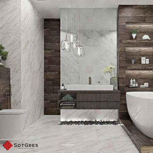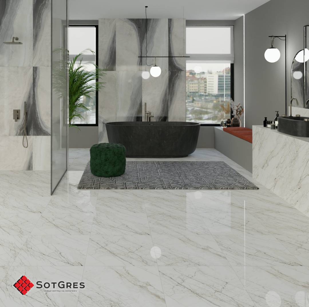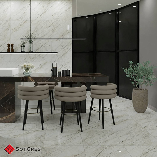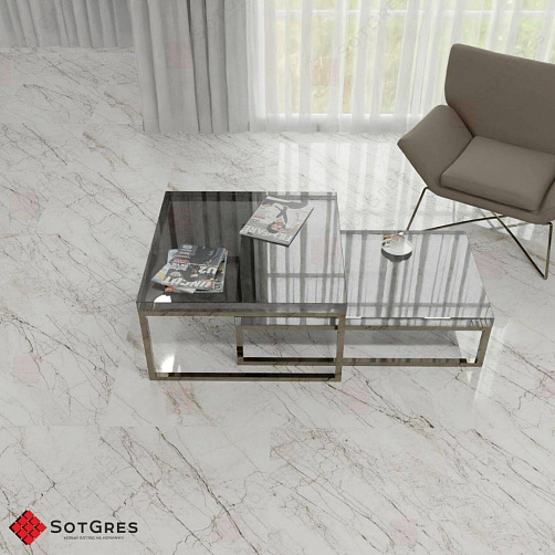 Купить керамогранит белый под мрамор 60x60, толщина 9 мм, 1,44м2. MITCHELL глянцевый керамогранит в Краснодаре