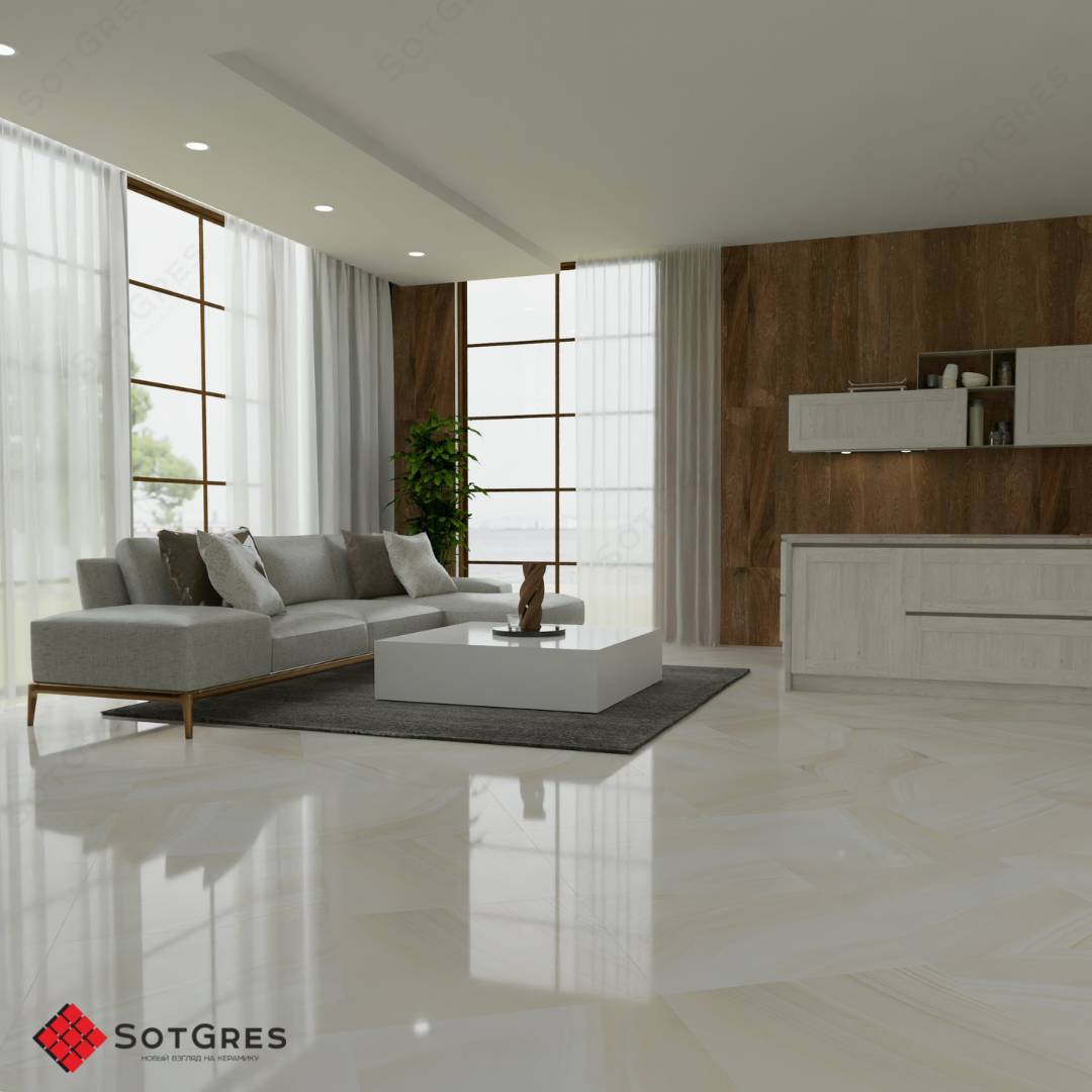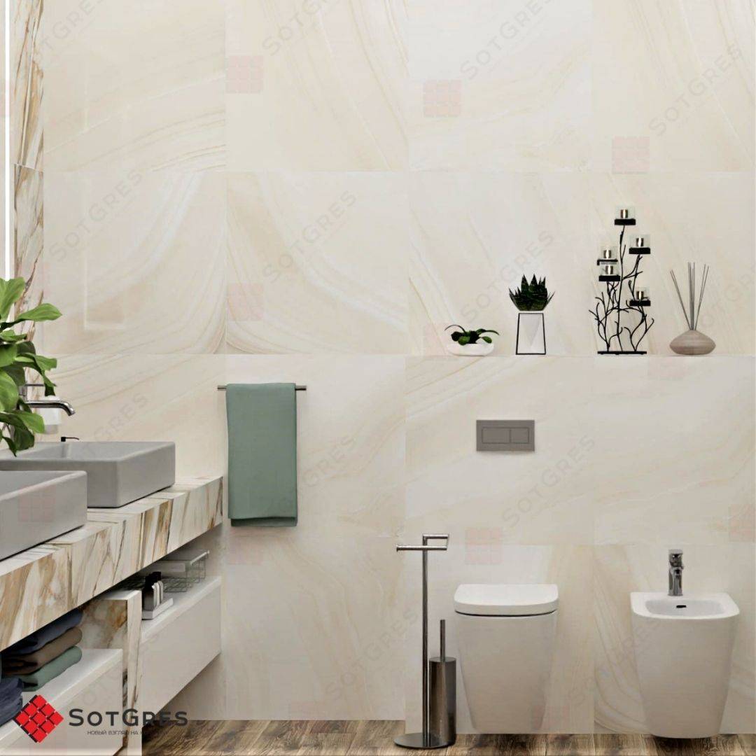 Купить керамогранит светлый бежевый под оникс 60x60, толщина 9 мм, 1,44м2. ONICE CREMA глянцевый керамогранит в Краснодаре