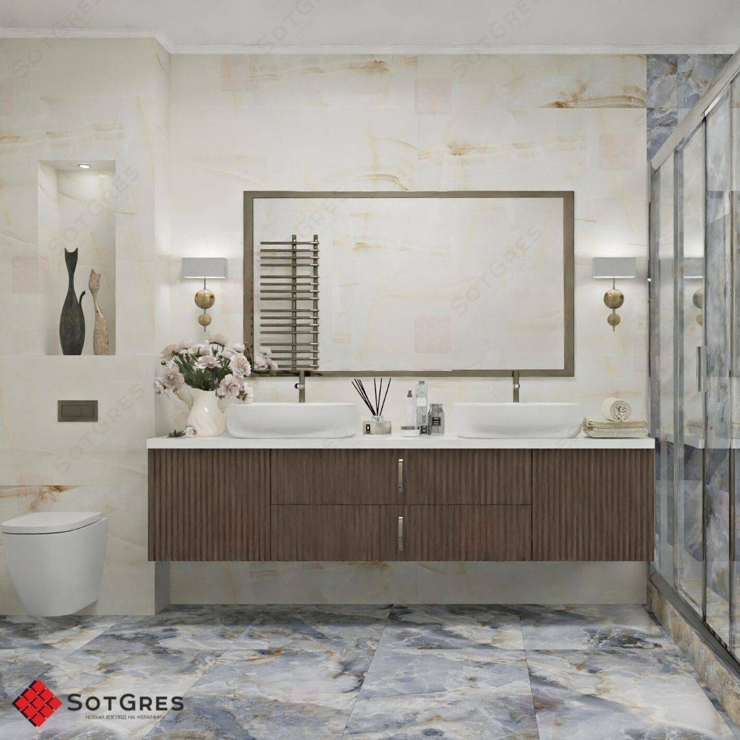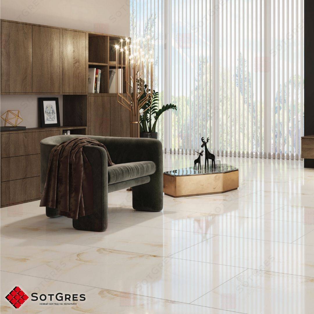 Купить керамогранит светлый бежевый под оникс 120x60, толщина 9 мм, 1,44м2. WHITE STAR глянцевый керамогранит в Краснодаре